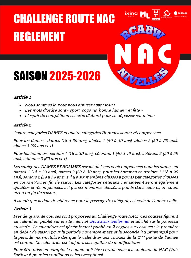 Vous voulez partager votre expérience de runner? Vous avez vécu une superbe expérience en course à pied? Envoyez nous une photo, un petit compte rendu et vous apparaîtrez sur notre blog ! Partagez votre compte-rendu Facebook avec @Nac Nivelles pour plus de visibilité dans le club.