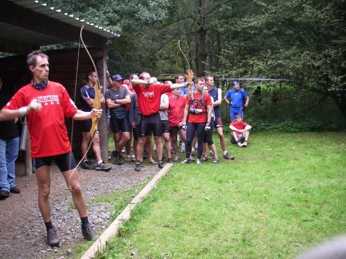 25/09 Yves, José, Jean-Marc et Jean-Da au raid des lorgnards ce dimanche, épreuve multidisciplinaire combinant jogging (bien sûr), kayak, vtt et…tir à l’arc. Yves a demandé à Jean-Marc de mettre la pomme sur sa tête…
