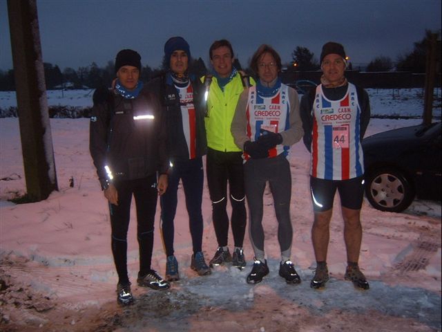Note: Yves rêve de me battre, je rêve de battre José, José rêve de me battre, Jean-Da rêve de battre Yves au sprint, Cédric rêve de battre mon record, Georges, Jean-Marc, Joel et Alain rêvent de terminer sans trop de bobos : RIEN QUE DU BONHEUR! Pourvu qu’il neige, au moins la course sera dure!