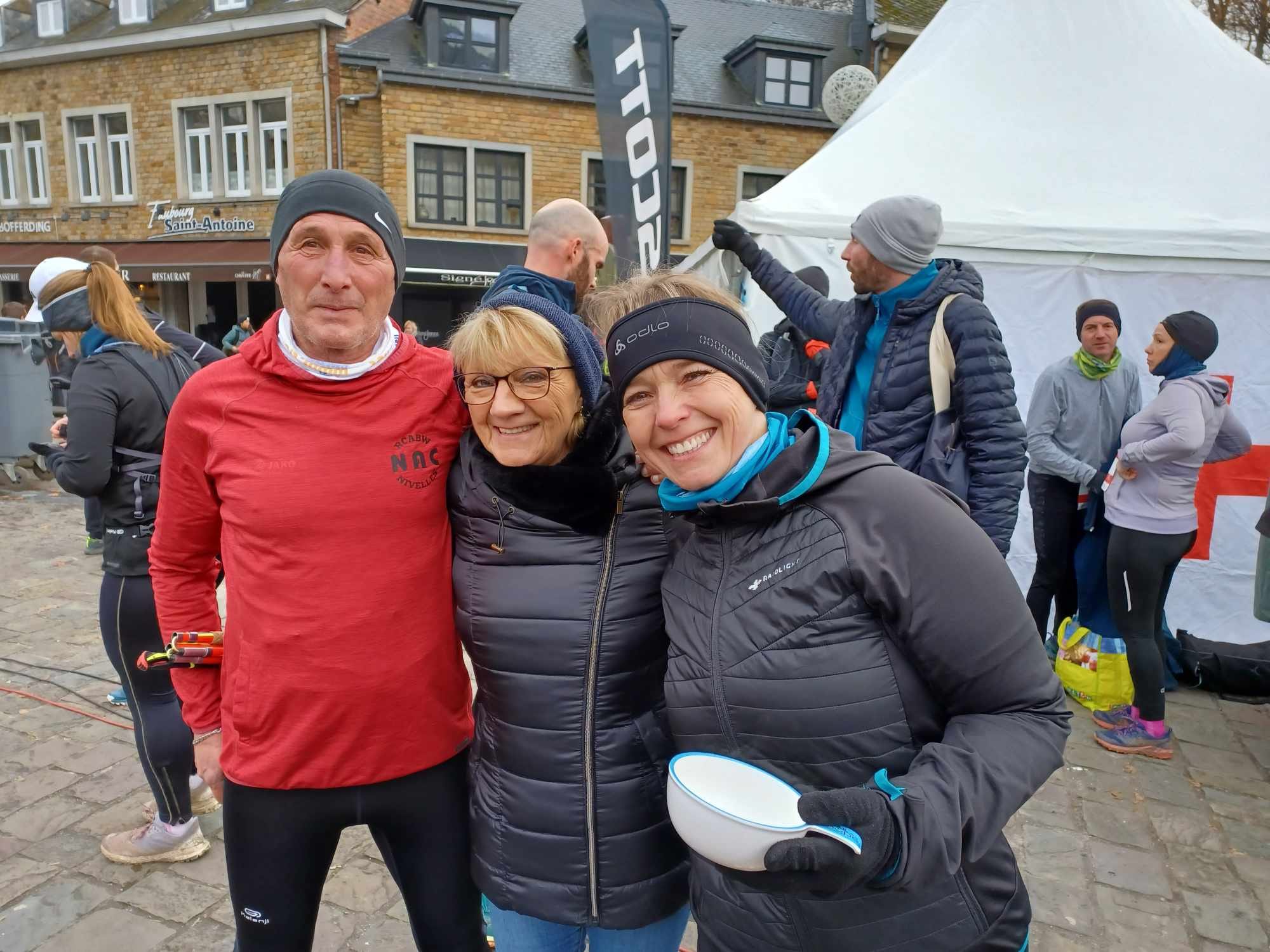 Trail de la Soupe à la Roche ce dimanche pour une bonne vingtaine de nos membres. La Roche-en-Ardenne, avec son cadre spectaculaire de château perché et de rivière sinueuse, crée le décor parfait pour un trail qui teste à la fois la résilience physique et mentale des coureurs. Les montées abruptes récompensent les participants par de belles vues panoramiques, tandis que les descentes techniques mettent à l’épreuve leur agilité et leur coordination. Et il faut bien le dire, font aussi bien mal aux papattes 🙂