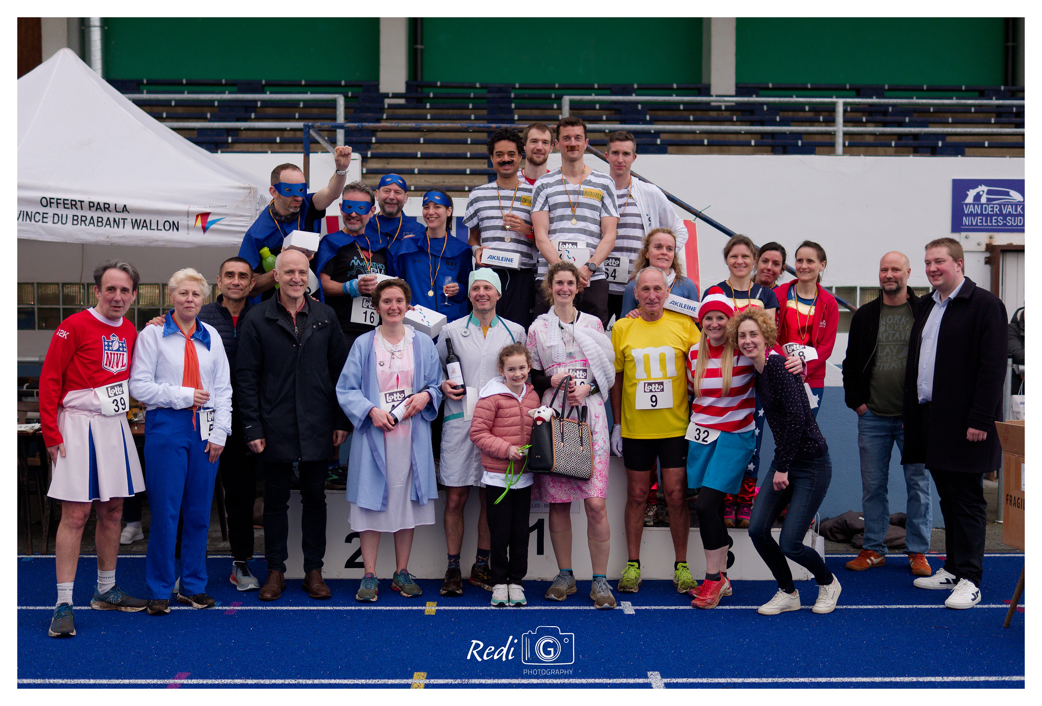 L’occasion pour nos membres de nous démontrer toute leur créativité. On a entre autres pu apercevoir les quatre maisons d’Harry Potter, Scoubidou et ses acolytes, des chirurgiens, des super-héros et super-héroïnes, des M&M’s, des aficionados des années 80,…Il y en avait pour tous les goûts. De quoi mettre une sacrée ambiance sur notre piste, dans le parc et lors de l’after qui a suivi!
