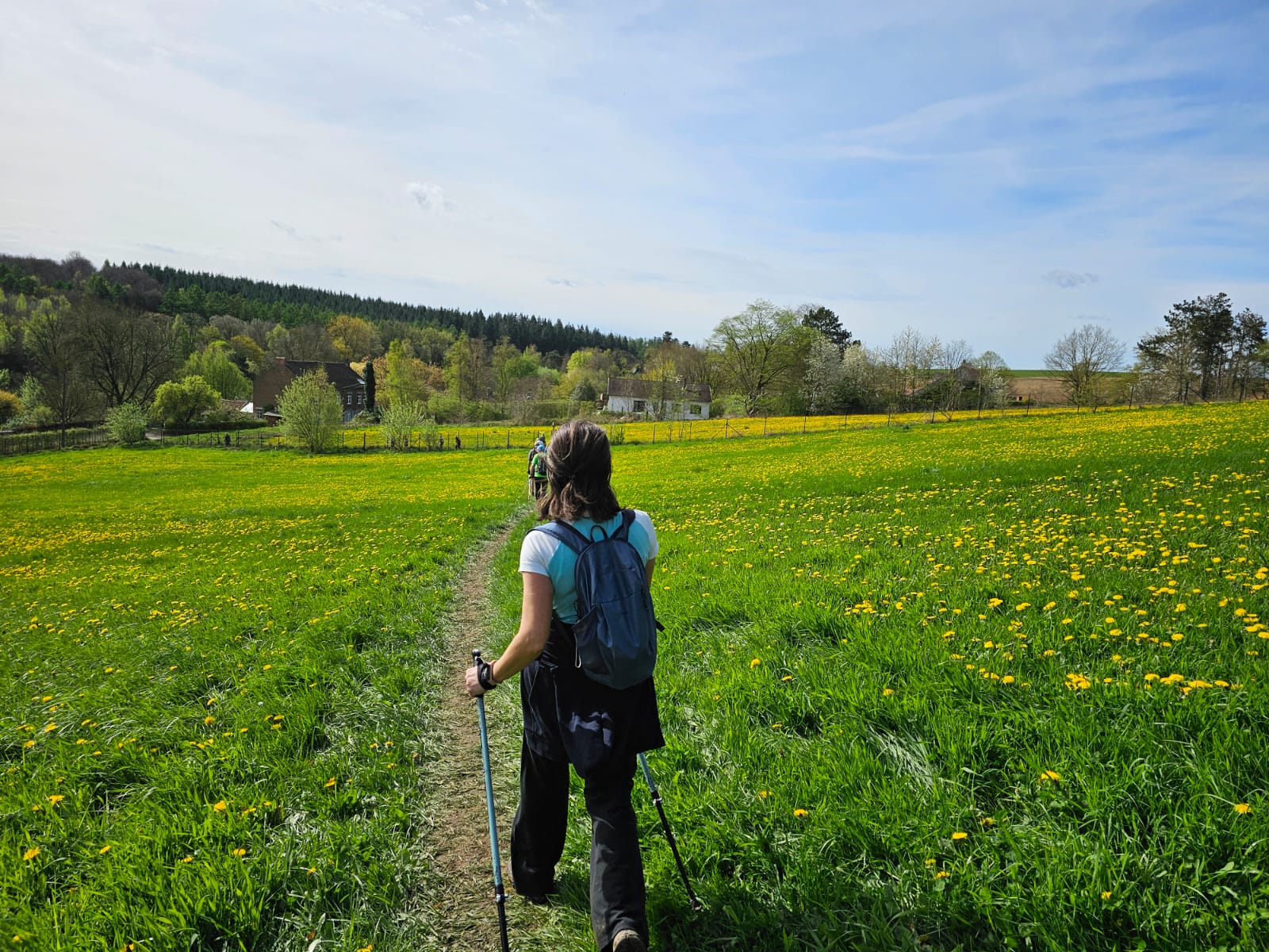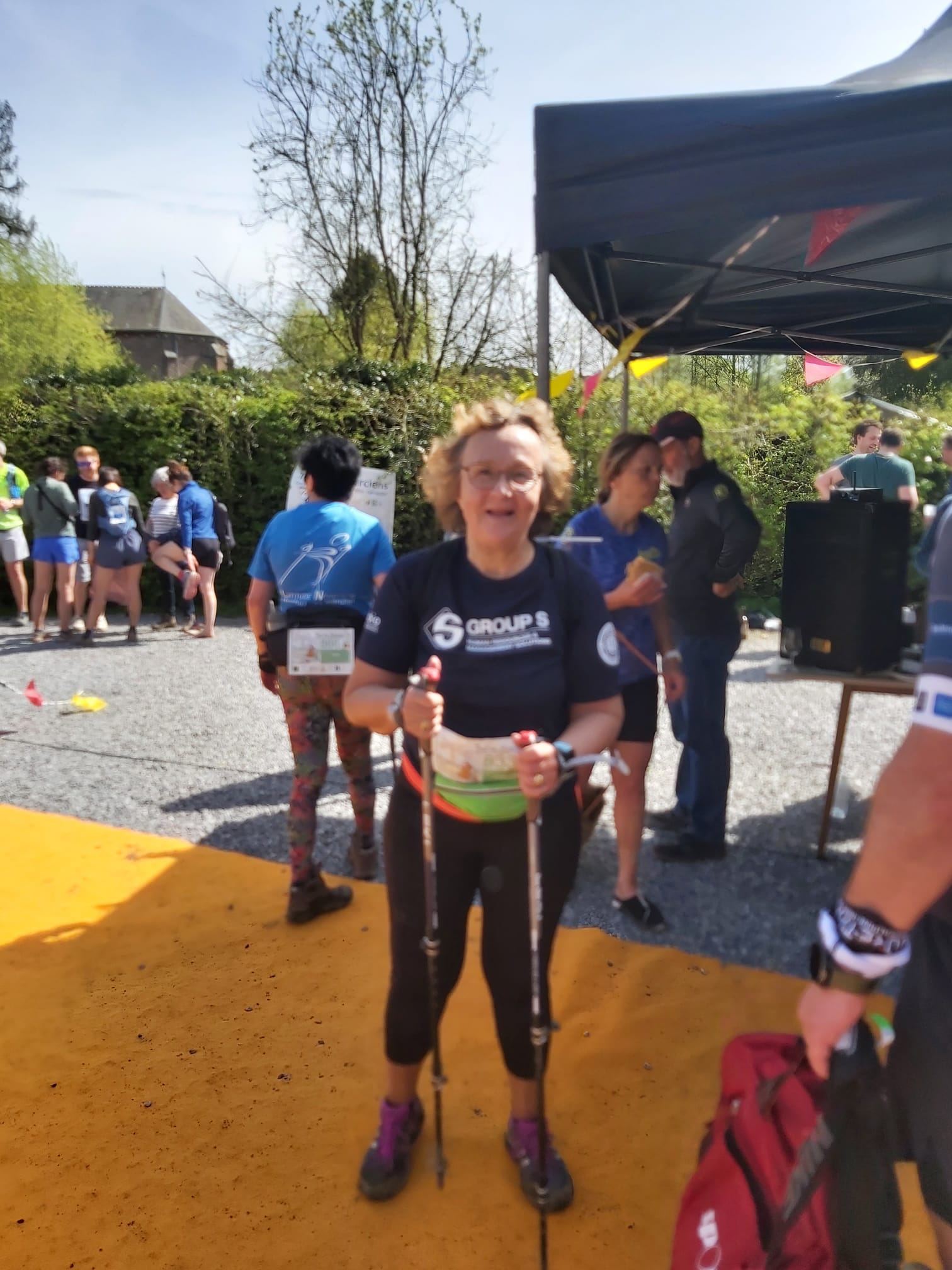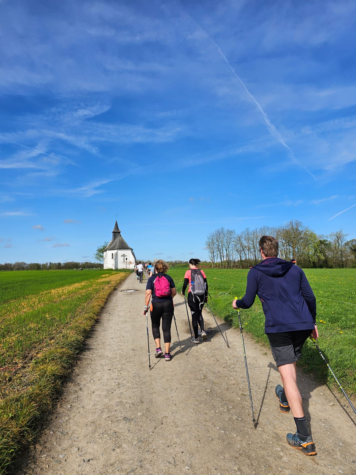 C’est donc sous un soleil radieux que 10 marcheurs du NAC se sont élancés au départ avec la vague de marche qui comptait une petite centaine de partants. La première montée a étalé le peloton selon les niveaux de force et ensuite chacun a trouvé son allure et son rythme. Allongeant la jambe pour se rapprocher au plus vite de l’arrivée ou flânant un peu pour se donner le souffle nécessaire pour boucler la boucle, toutes les manières sont bonnes pour se faire plaisir. Et du plaisir, il en a eu avec ce Trail des Cisterciens. Un parcours de toute beauté, dans les bois qui reverdissent et se parent de bleu grâce aux jacinthes sauvages, une traversée exclusive du vignoble du Château de Bousval, les chemins de campagne jusqu’à la chapelle du Try au chêne, un passage par les jardins partagés de Villers-la-Ville qui débouchent sur une vue imprenable surplombant l’abbaye cistercienne. Quand on croit qu’on a tout vu, la descente nous emmène pour une petite visite des ruines et la cornemuse charme nos oreilles dans les vestiges du chœur médiéval. Au ravitaillement, de gentes dames et damoiselles nous offrent à boire et à manger dans le jardin de l’office du tourisme. Le temps de souffler, de s’hydrater et grignoter de quoi tenir pour la deuxième partie et c’est reparti ! Les kilomètres se font plus longs et on souffre un peu plus des passages dans une boue bien glissante, résultat d’une saison plus que pluvieuse. Sur les derniers kilomètres, c’est l’occasion d’encourager et d’être encouragé(es) par les coureurs des longues distances qui finissent leurs boucles. Une dernière belle montée fait sentir que le repos de l’arrivée doit encore se mériter un peu ! Et au passage de la ligne d’arrivée, c’est la joie et la satisfaction !