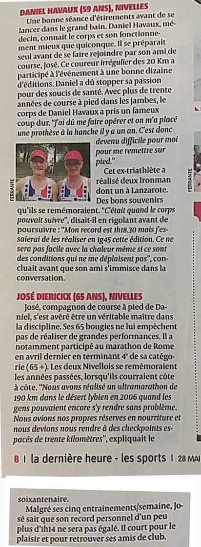 Pas de chance pour Olivier Magritte qui a pris le départ malgré une blessure et qui a dû arrêter après 9.5 km: quand on prépare depuis aussi longtemps une course, c’est vraiment pas de chance…