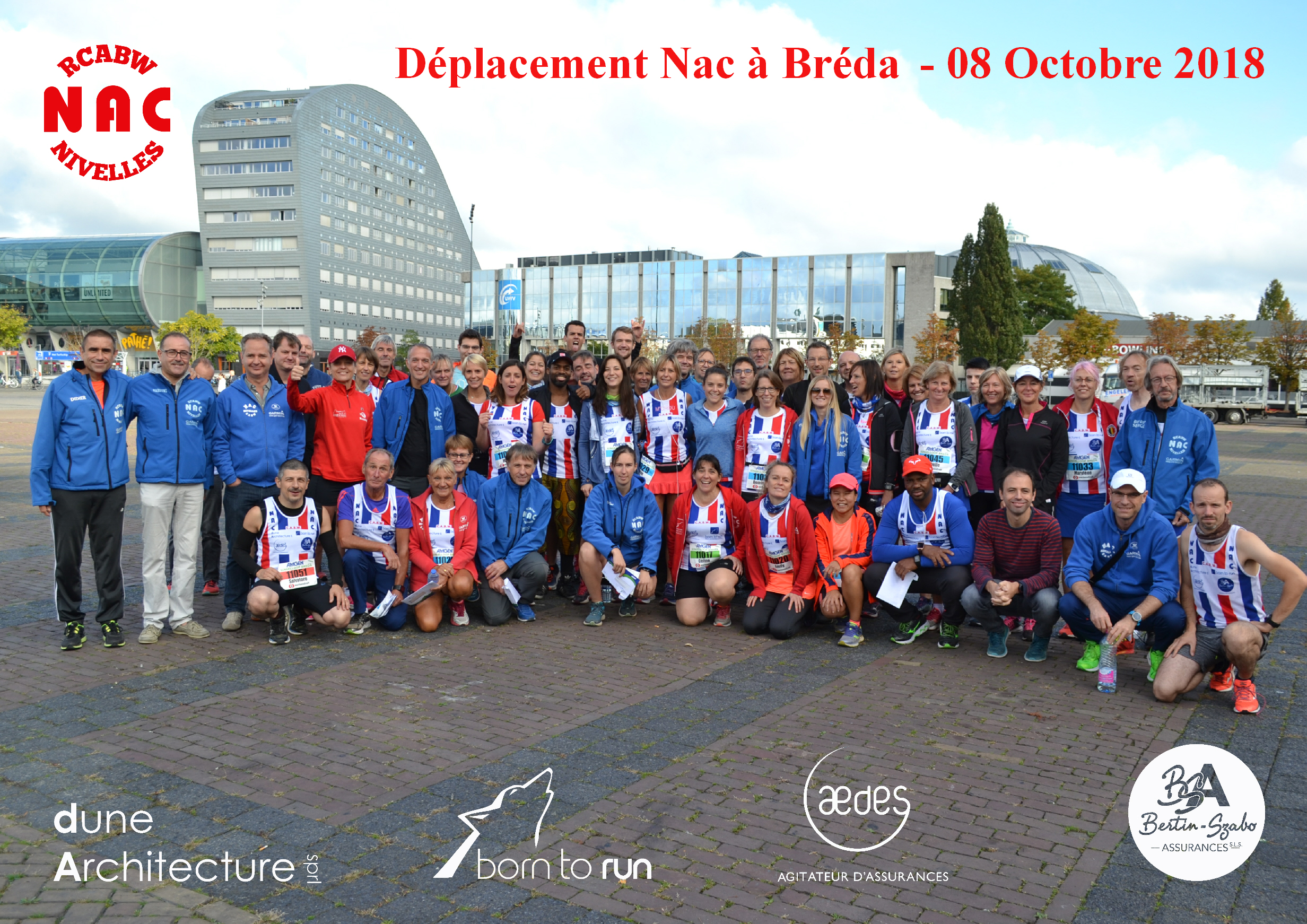Nous remercions nos deux sponsors principaux, le magasin Born To Run, spécialiste running à Nivelles (Yves et Claire étaient d’ailleurs présents à notre souper, c’est sympa!) et AEDES, l’agitateur d’assurances.